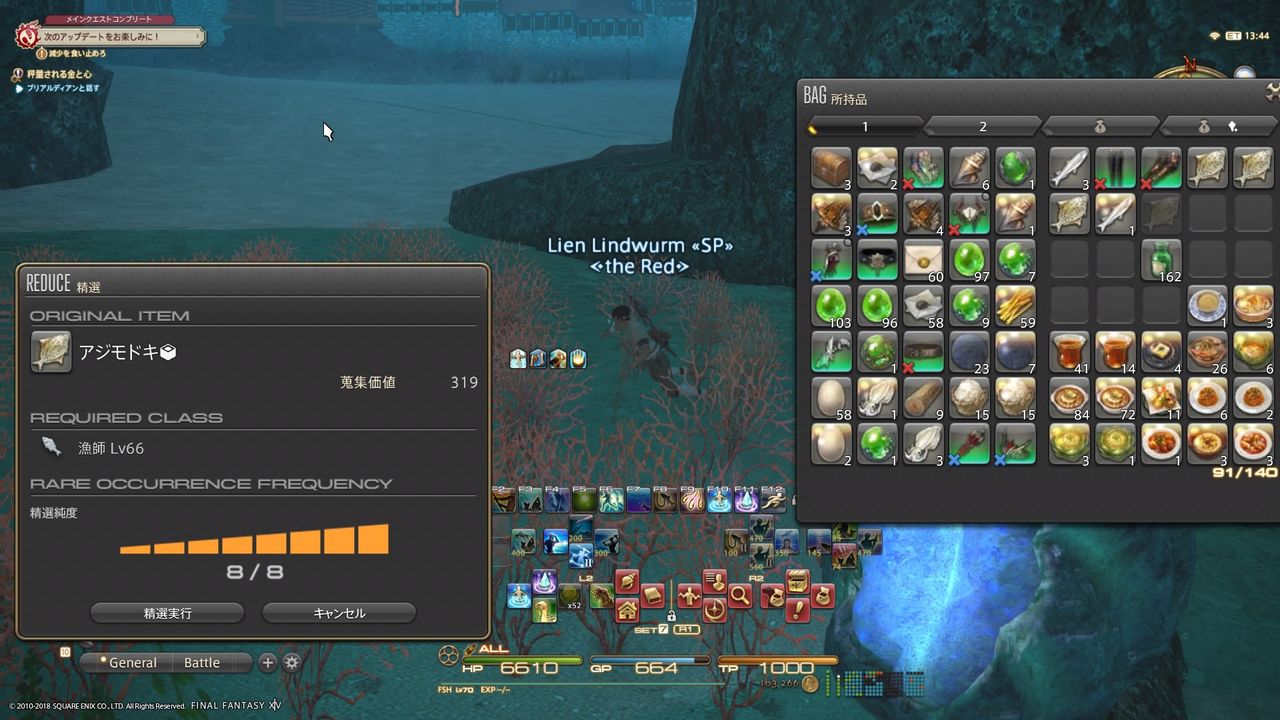 で、蒐集品対象には、自動で蒐集品コマンドが発動し、蒐集品として釣ることができます。
